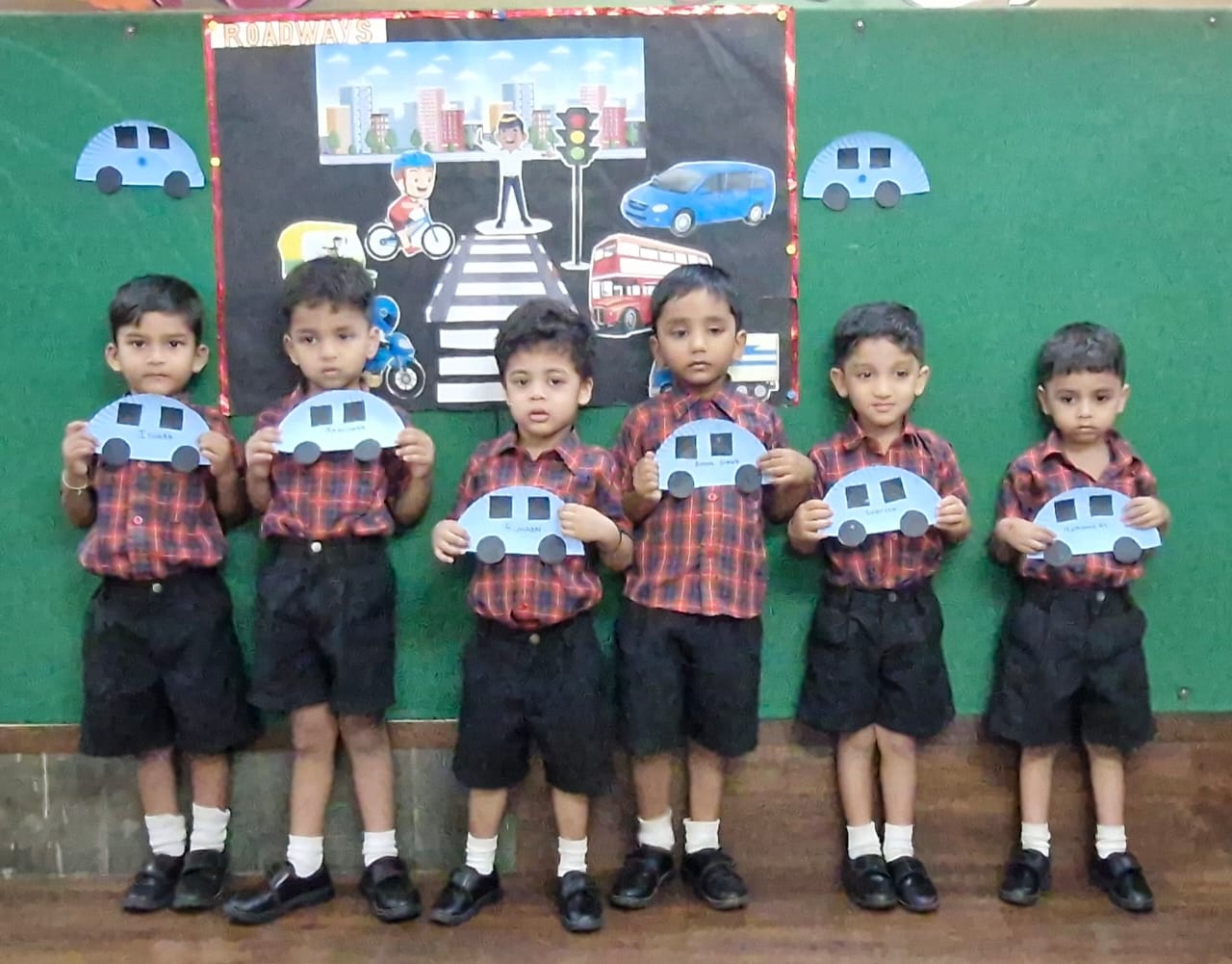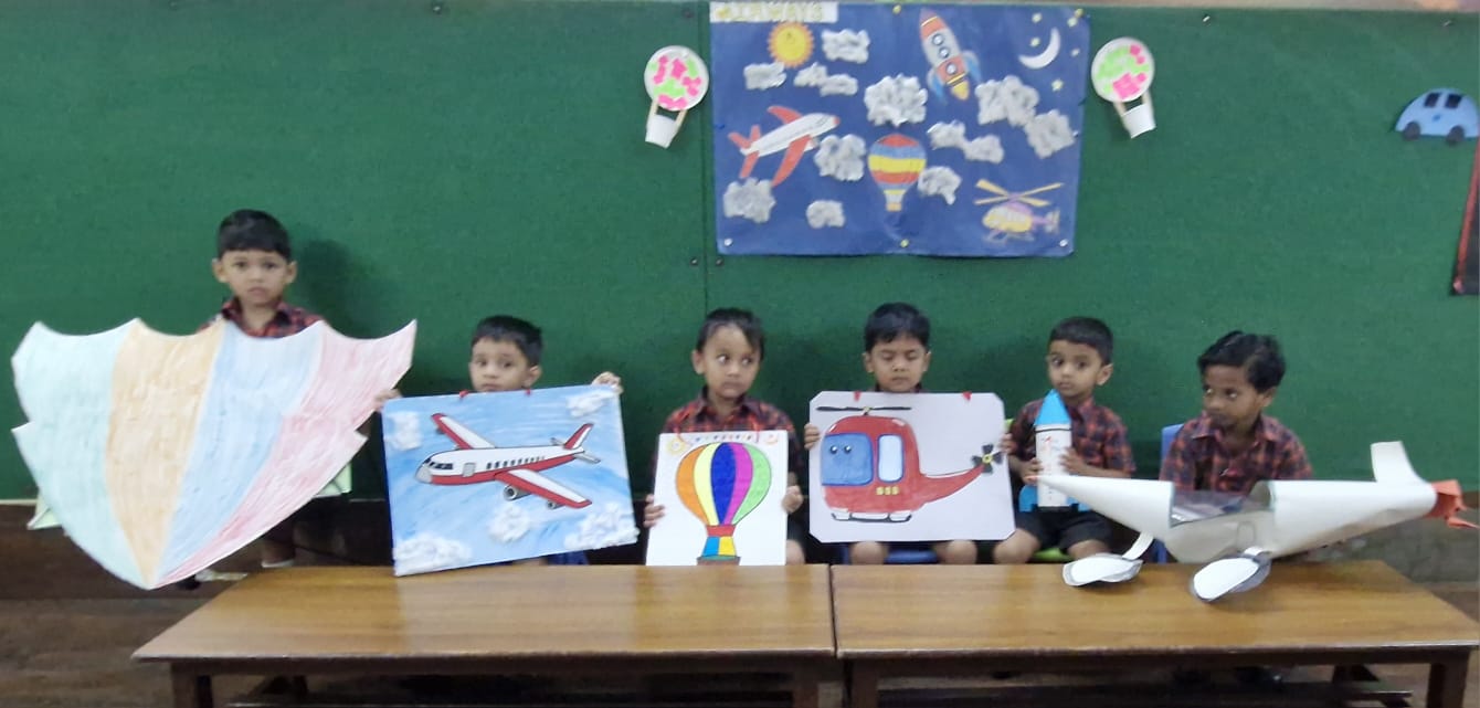 The classroom was transformed into a colourful transport corner, decorated with vibrant pictures and charts of different vehicles that travel on land, in water, and in the air. The cheerful setting immediately sparked excitement among the children.