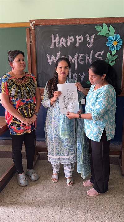 To add a spirit of fun and entertainment, Ms Vailena D`souza had organised interesting spot prizes for the participants. Among the other activities planned by her, an engaging game was organised in which the mothers were divided into two groups and were given cut-outs of pictures that they had to assemble as a puzzle, identify the personality and speak a few lines about her. The pictures were of Jijabai and Savitribai Phule. The mothers participated enthusiastically in this creative game. They arranged the puzzles, identified the personalities and spoke lucidly about their inspiring contributions.